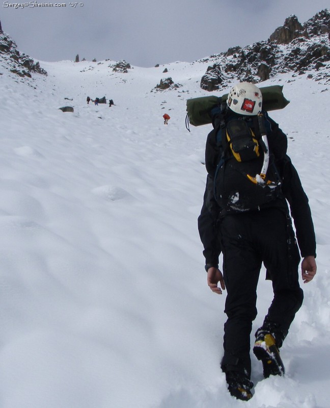 Погода была в основном ненастная, но иногда проглядывало солнышко и становилось веселее шагать вверх по снегу.